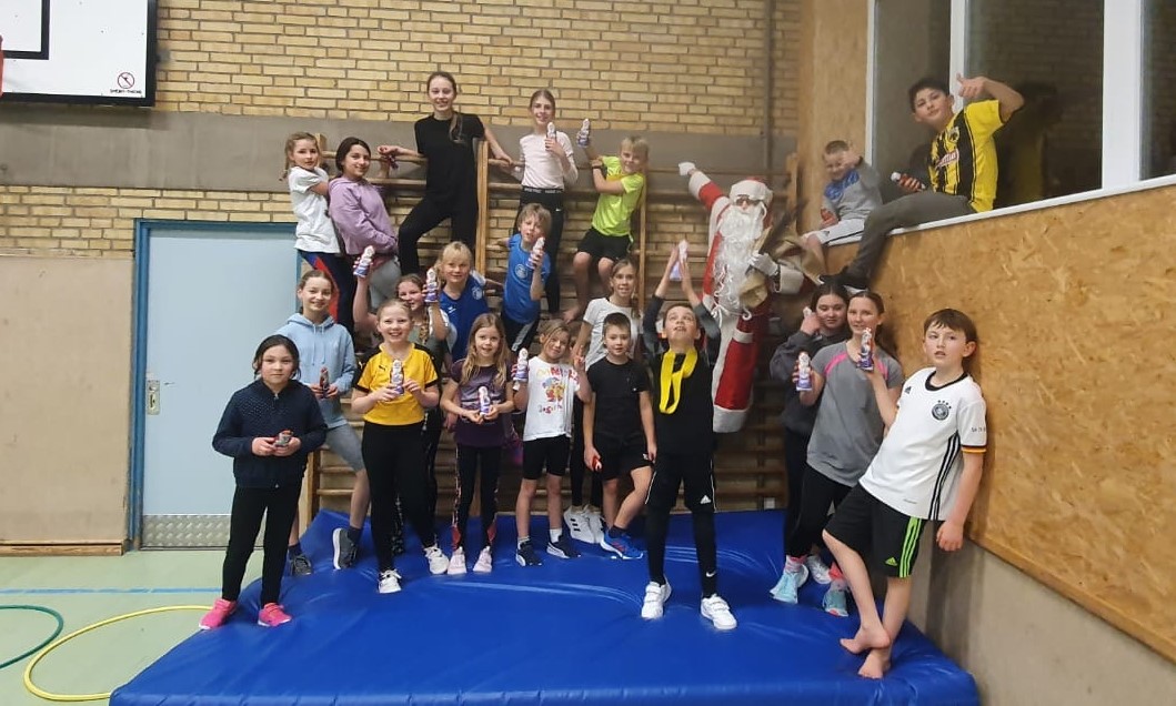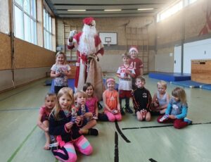 Jahresabschluss beim Kinderturnen am 16. Dezember – Noch einmal gab es 5 Stunden hintereinander Kinderturnen für die verschiedenen Altersklassen vom Krabbelalter bis 12 Jahre und zum Abschluss Einradfahren mit Jens Röth in der Fahrdorfer Sporthalle. Dabei durfte natürlich der Weihnachtsmann nicht fehlen. Dieser staunte nicht schlecht, als er von Jens wöchentlichem Mammutprogramm erfuhr. Unermüdlich 5 Stunden hintereinander, in jeder Stunde ein neues Programm, neuer Parkour, abgestimmt auf die jeweilige Altersklasse. So genügte natürlich auch für den Weihnachtsmann nicht nur ein Einsatz. Jede Stunde aufs Neue überraschte er die Turnkinder, so dass am Ende niemand leer ausging – und prüfte natürlich auch, ob Turnlehrer Jens sein Gedicht gelernt hatte. Ein gelungener Jahresabschluss mit Bewegung, Spaß und Keksen. Vielen Dank an Jens! Wir freuen uns auf den Start ins Kinderturnjahr 2022 am 13. Januar.
